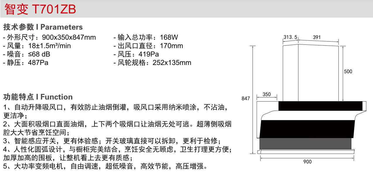 自動升降吸風口,有效防止油煙倒灌....