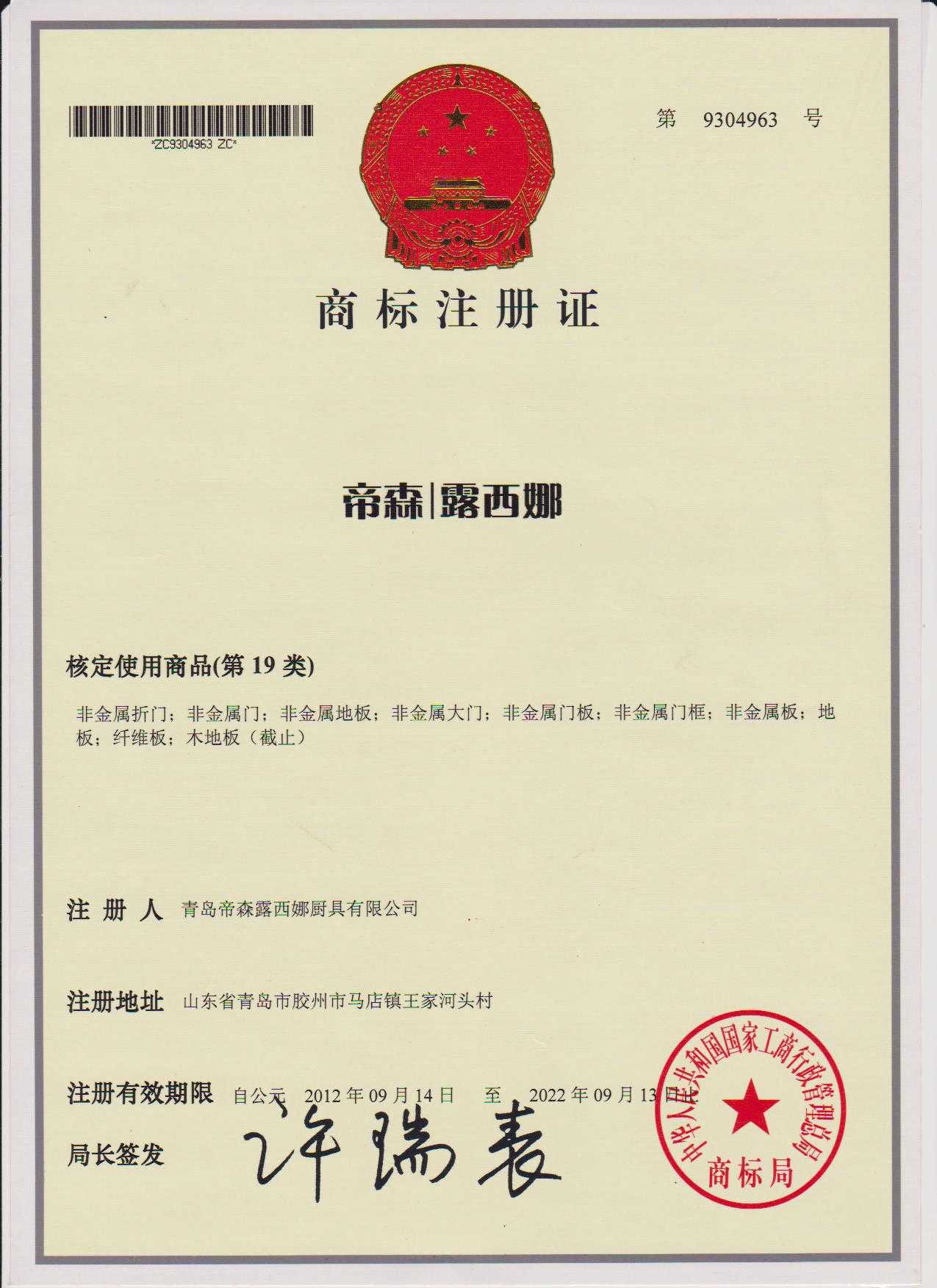 商標注冊證