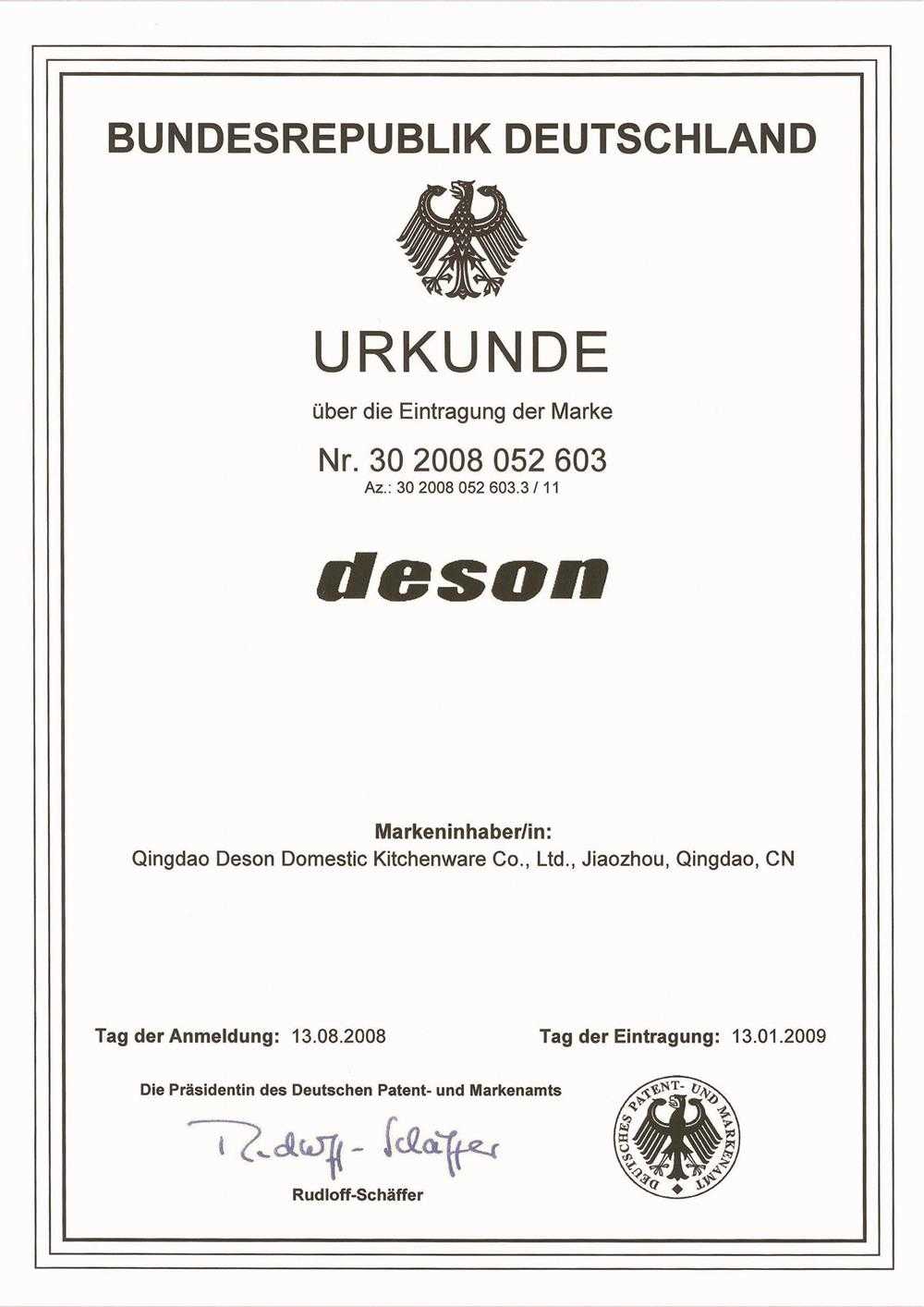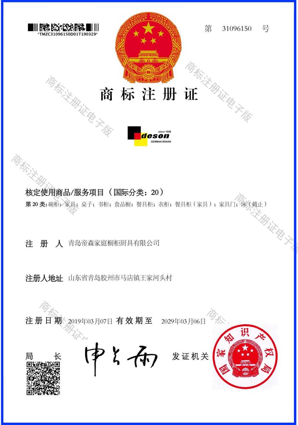 帝森德國商標證