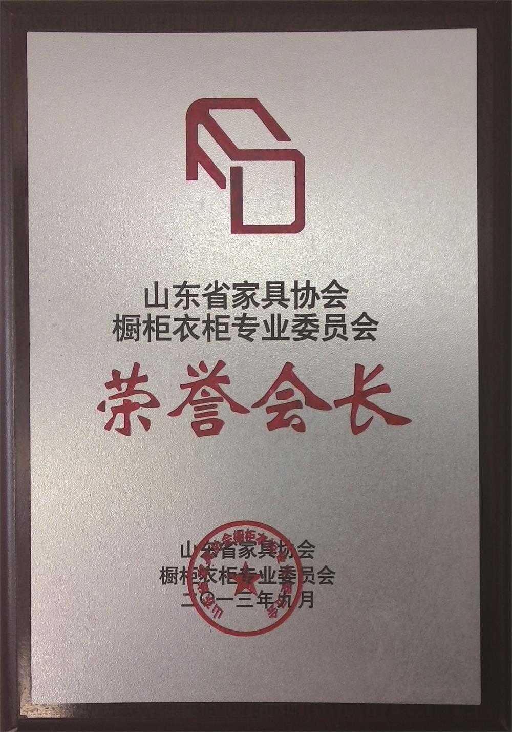 山東省家具學會/櫥柜衣柜專業委員會榮譽會長